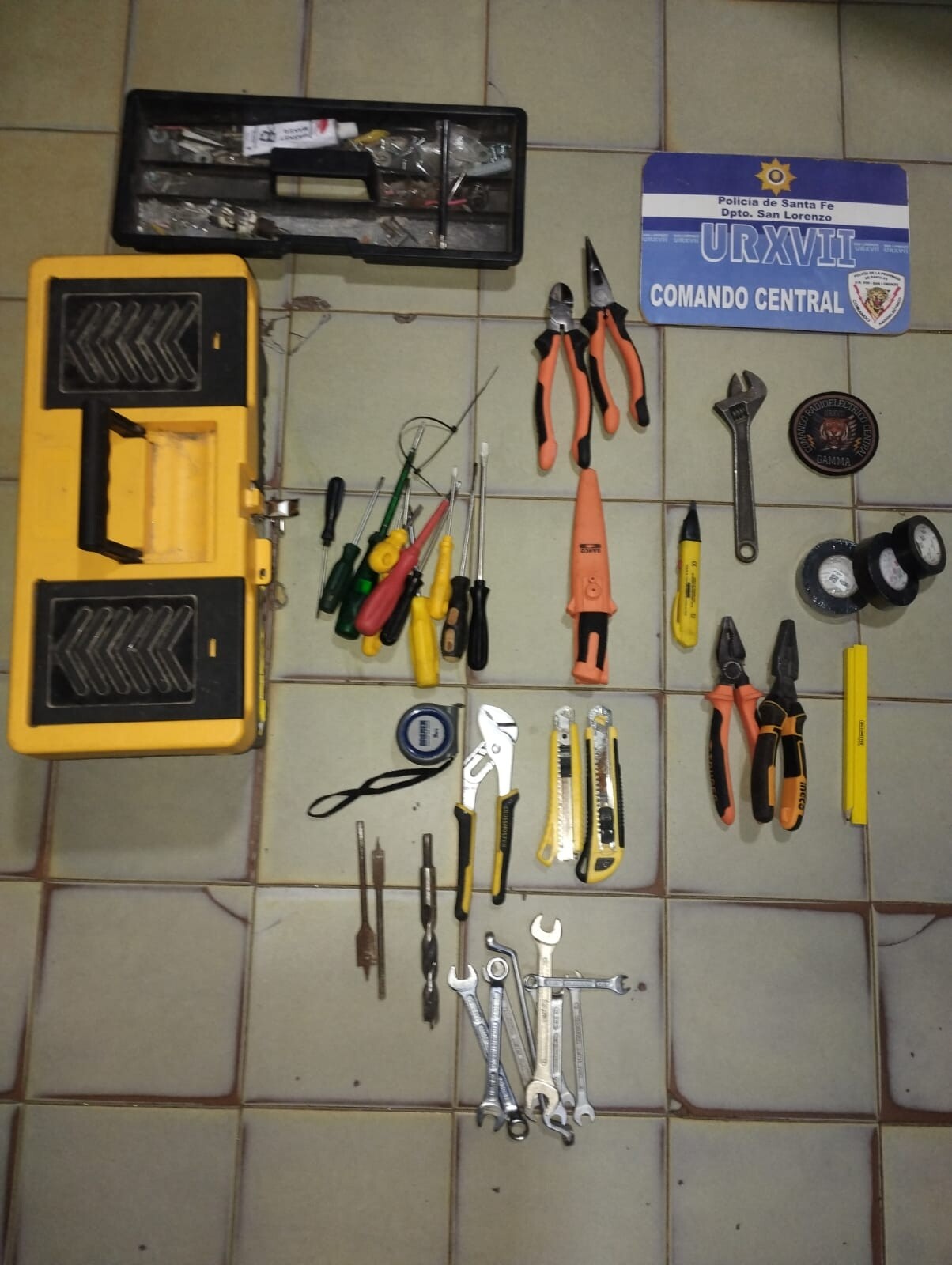 Los hombres fueron trasladados a sede policial y se procedió al secuestro de   una caja de herramientas  que contenía más de 40 elementos (pinzas, llaves combinadas, destornilladores y herramientas de precisión, entre otros).