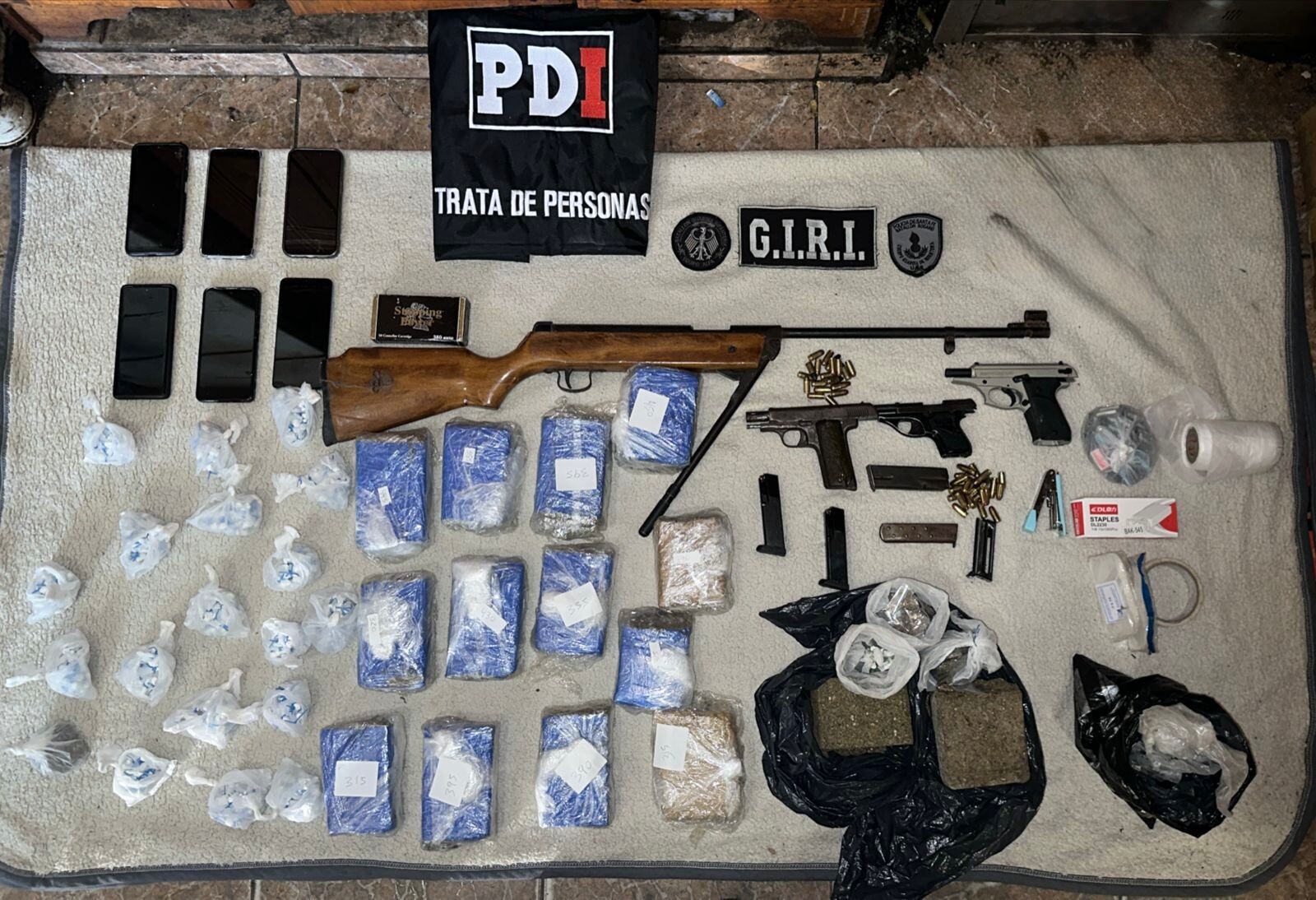 En un operativo conjunto entre la Policía de Investigaciones (PDI) y el cuerpo de irrupción GIRI, se logró el secuestro de más de 6 kilos de marihuana y una importante cantidad de dosis de cocaína listas para la venta.