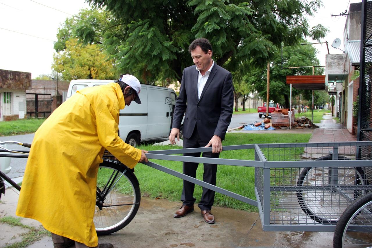 Este lunes por la mañana en el Centro de Formación en Oficios, el intendente Leonardo Raimundo entregó bicicarros a otros cuatro recolectores informales y, de este modo, ya son 25 los trabajadores que dejaron de utilizar tracción a sangre en su actividad laboral. La entrega de los rodados se realizó en el marco de un proyecto apuntado a la erradicación del uso de animales como medio de transporte, que corrió por cuenta de las áreas de Empleo, Tránsito y del Centro de Formación en Oficios, en cuyo seno fueron realizados los cubiletes.