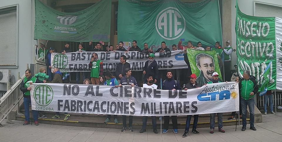 En la Dirección General de Fabricaciones Militares, para realizar un multitudinario acto, con la presencia de delegaciones de Fray Luis Beltrán, Villa María, Río Tercero, Azul , Jachal y Sede Central , en rechazo a los 150 despidos conocidos en los últimos días en las tres delegaciones de Córdoba y Rosario, y contra la política de vaciamiento que encabeza la intervención del organismo en sintonía con el ajuste general que el Gobierno Nacional impone en todas las áreas del Estado.